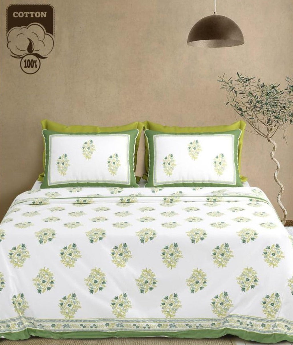 Fresh Florals & Vine Jaipuri Handblocked Print King Size Bedsheet
