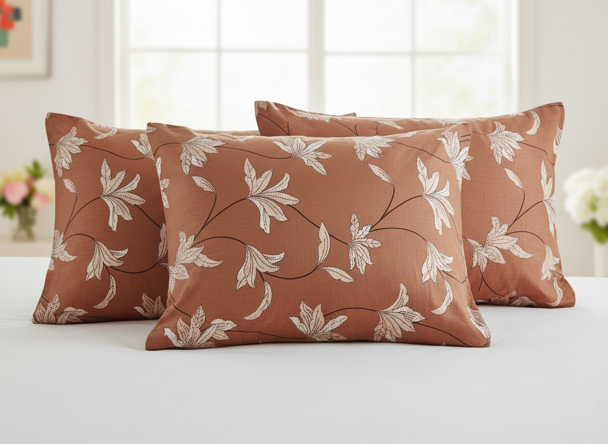 Bring the gentle warmth of an afternoon garden into your bedroom with the Light Brown Bedsheet Set. This elegant design features a serene light brown background, beautifully contrasted by delicate peach and white floral motifs.