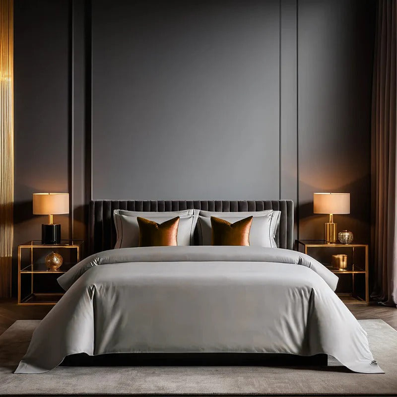 Light Grey Solid Plain 400 TC Premium Cotton King Size Bedsheet with 2 Pillow Covers